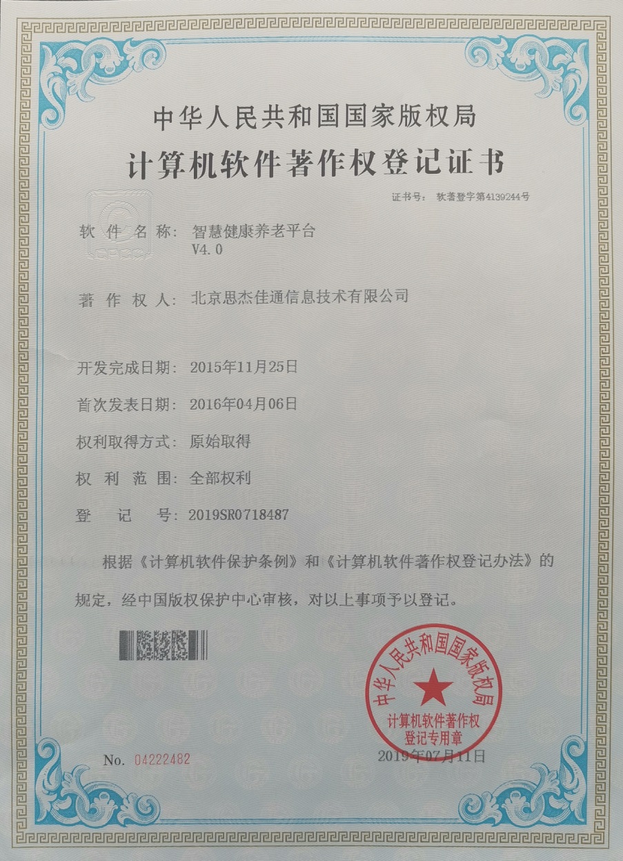 八、具有多項(xiàng)核心的養(yǎng)老平臺(tái)計(jì)算機(jī)軟件知識(shí)產(chǎn)權(quán)證書(shū)